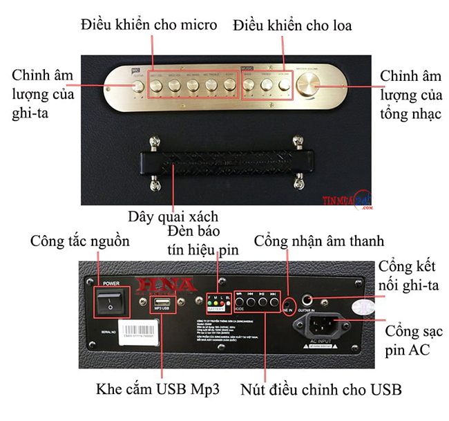 - Bình acquy kèm loa được bảo hành 6 tháng