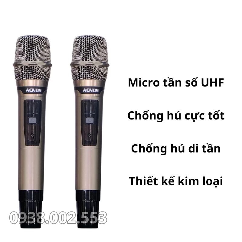 Đi kèm máy là 2 chiếc Micro không dây bằng nhôm cao cấp, cầm rất đầm tay. Micro sử dụng tần số UHF, có khả năng hút âm cực nhẹ, giúp người hát không bị mệt và luôn tự tin thể hiện những bản nhạc yêu thích.