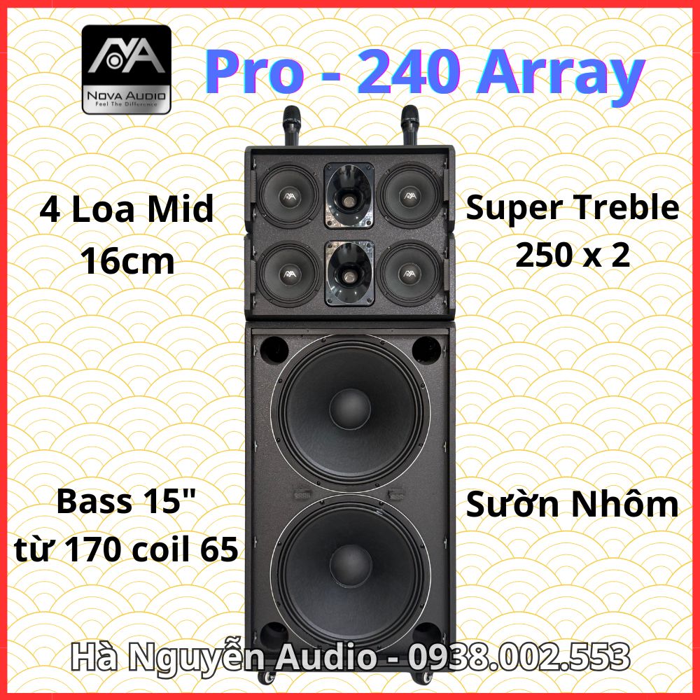 Nova Pro-240 Array sỡ hữu cấu hình loa vượt trội, thiết kế dạng Array để có thể tối đa hóa âm thanh theo mọi góc độ..