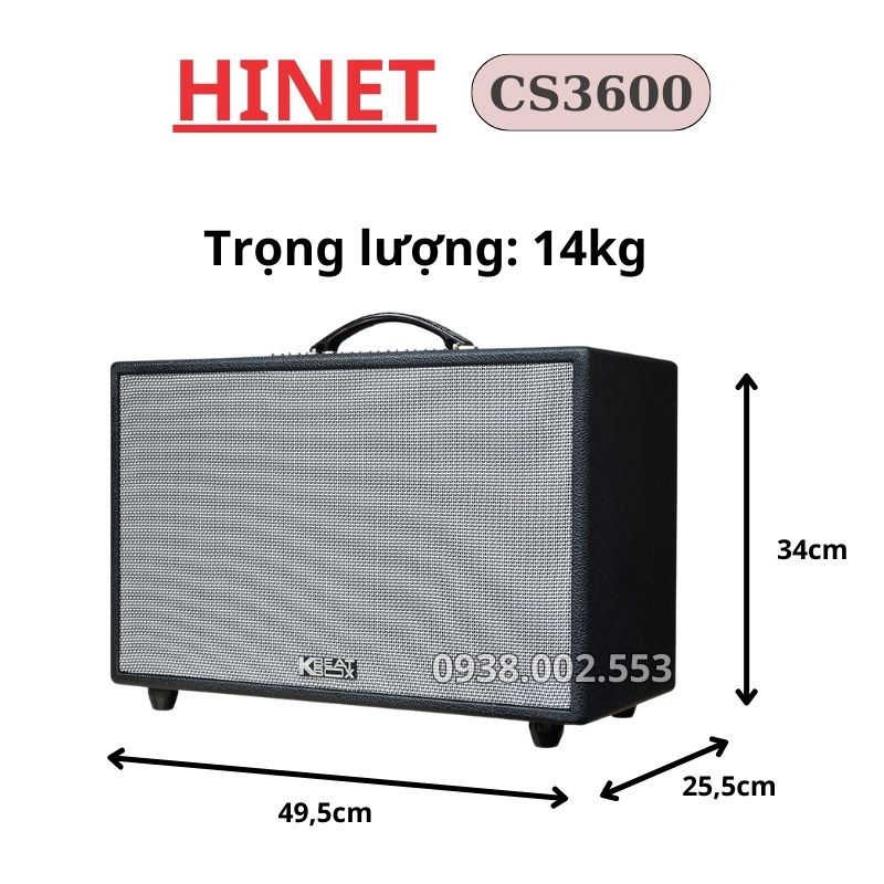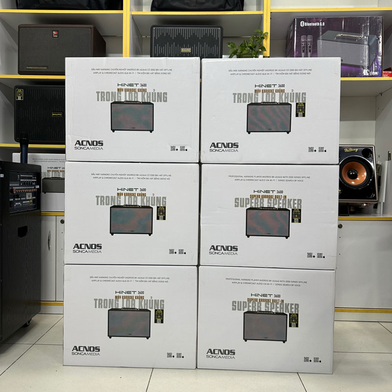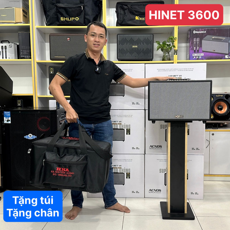 HiNet là dòng sản phẩm dàn âm thanh di động kết hợp hoàn hảo 3 trong 1 bao gồm Nghe - Nhìn - Hát. Cụ thể với HiNet3600 chính là sự kết hợp của Dàn âm thanh di động ACNOS CS3600 đang rất “HOT” trên thị trường và 1 đầu máy Android 8K. Về cơ bản, HiNet 3600 có ngoại quan, cấu trúc loa (cấu trúc 3 đường tiếng với 1 loa BASS 25CM (10"), 2-loa TRUNG 10CM (4"), 2-loa Neo TWEETER) và các tính năng hoàn toàn giống CS3600 như hiệu ứng Echo, Reverb, Enhancer-nâng tiếng, MWS-kết nối không dây 2 loa cùng lúc, chống hú di tần khi hát gần loa,…). Công suất thực RMS 200W (max).