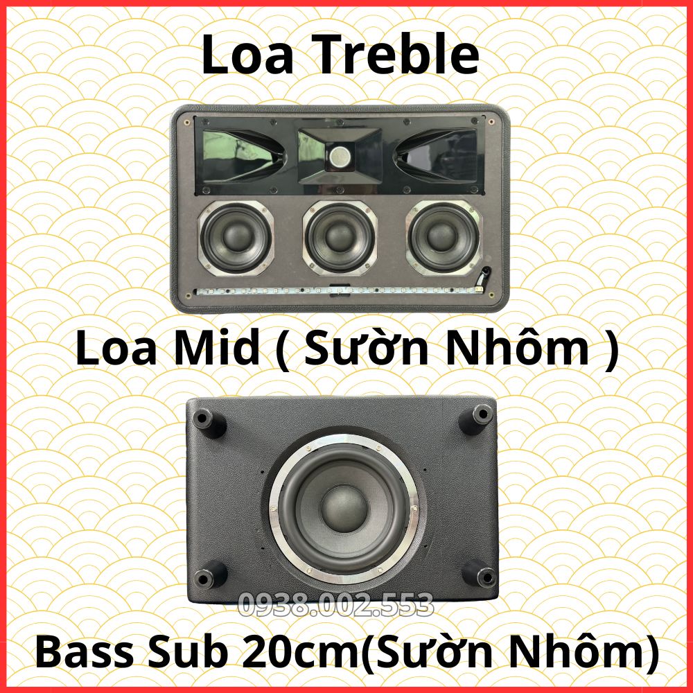 1 Bass Sub 20 (Sườn Nhôm) 3 Mid (Sườn Nhôm) 3 Treble ( 1 Neo + 2 Lụa) |