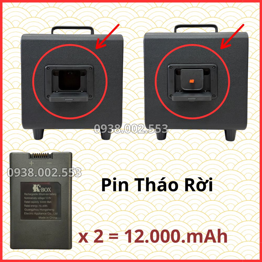 Pin của Loa Xách Tay KCBox KQ Harmony được thiết kế mới 2026, CÓ thể THÁO rời TRONG khi ĐANG SỬ DỤNG và SẠC rời để có thể cắm vào sử dụng liên tục không ngừng nghỉ.