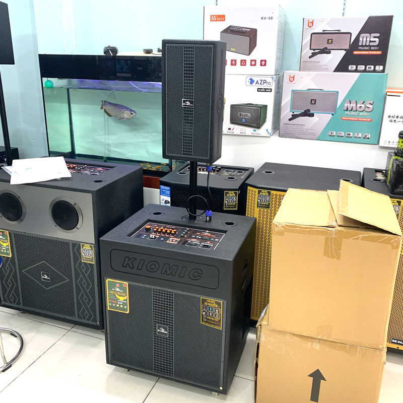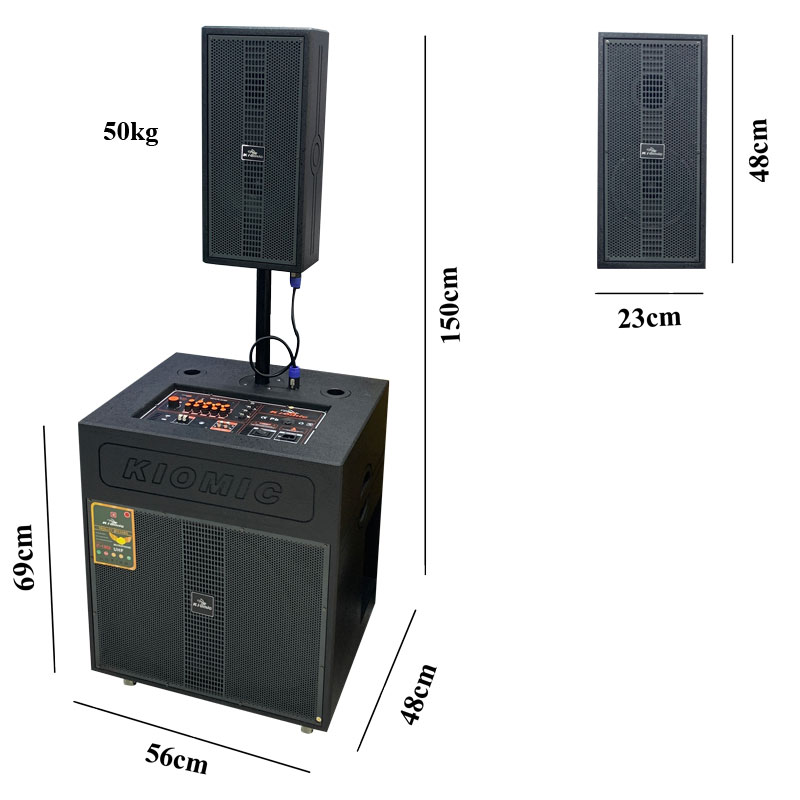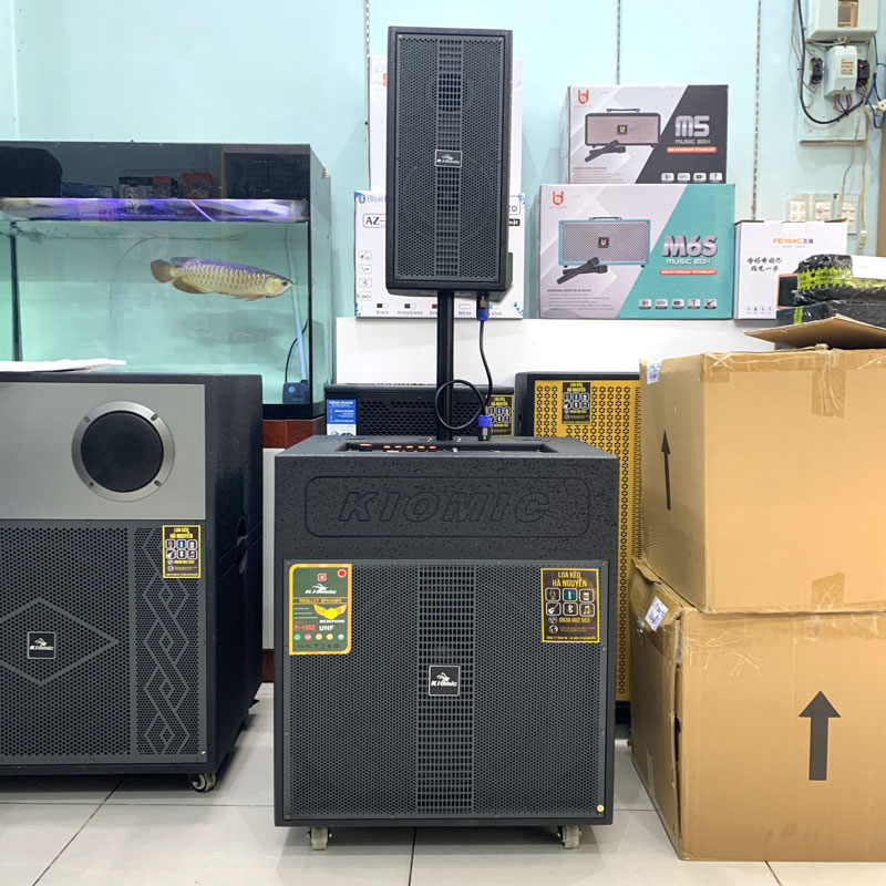 Loa kéo karaoke Kiomic K1502 chính hãng với bass 4 tấc công suất 600w thiết kế vỏ ngoài bằng gỗ màng lưới bằng kim loại, tặng kềm 2 mic không dây hát karaoke cực hay