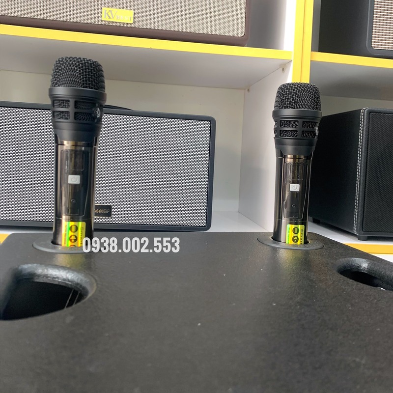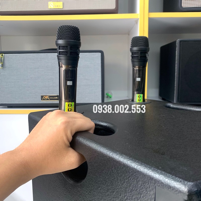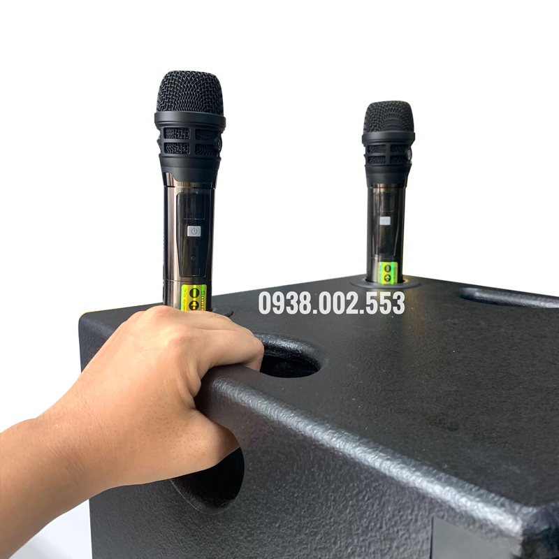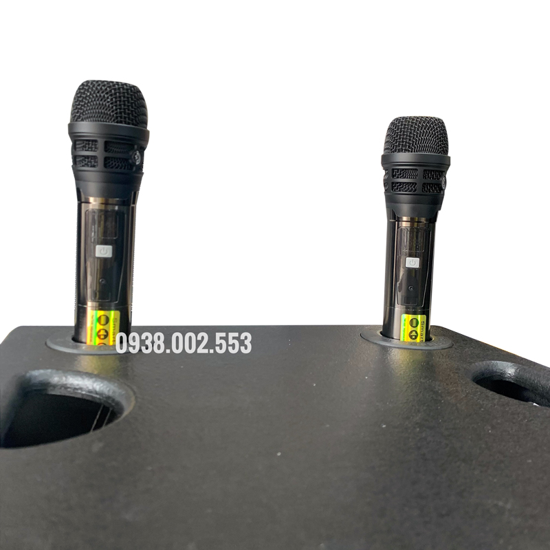 - Loa được trang bị tích hợp 2 Micro không dây UHF bằng kim loại chắc chắn, giúp mang lại chất lượng âm thanh rõ ràng và ổn định.