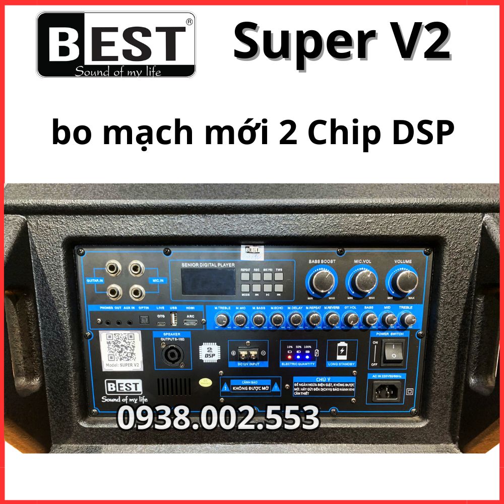 - Bo mạch công suất PMPO ( Max ) : theo nhà sản xuất BEST công bố Super V2 đến 2000W. Công suất này có thể đáp ứng nhu cầu từ nghe nhạc đến karaoke ngoài trời quy mô lớn.