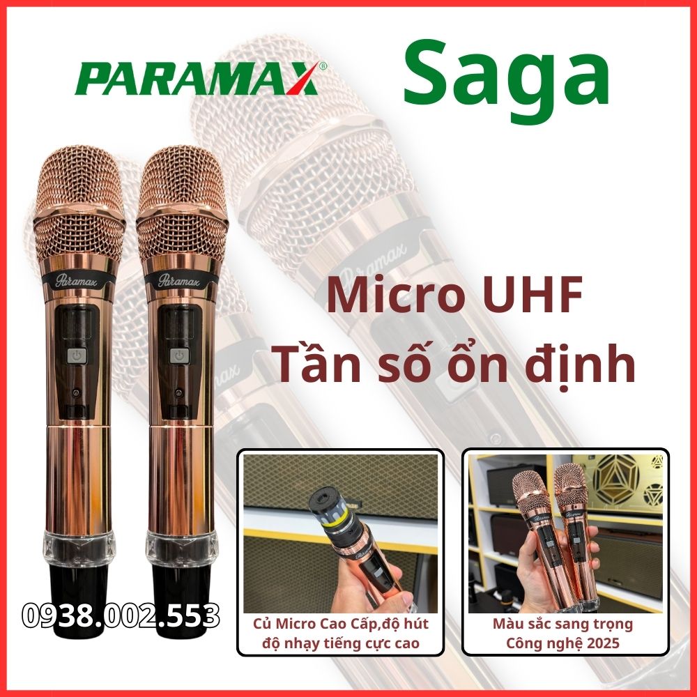 Micro được nghiên cứu và phát triển để sử dụng cho dòng loa Paramax SAGA, thiết kế kim loại, giúp cầm nắm chắc chắn. Độ hút và nhẹ của micro đã được khách hàng đến trải nghiệm chất âm trực tiếp tại cửa hàng.