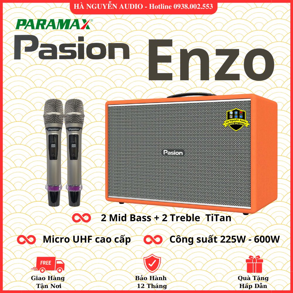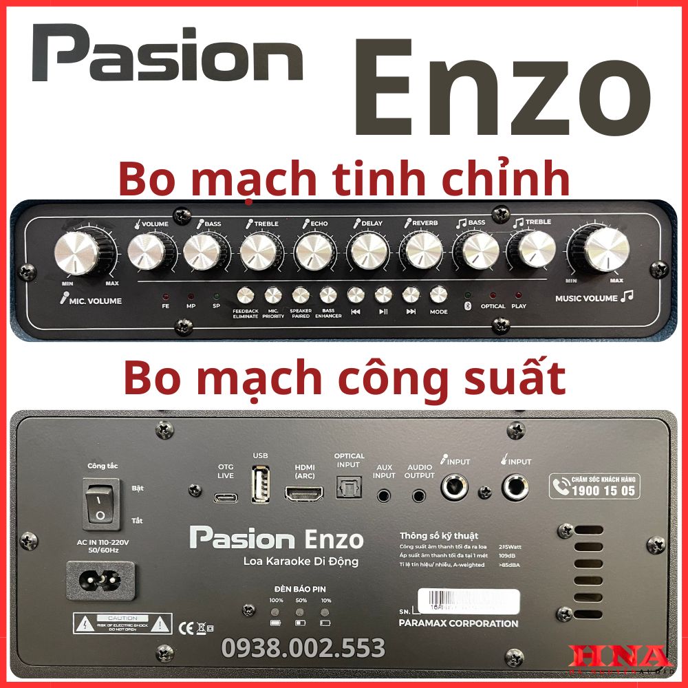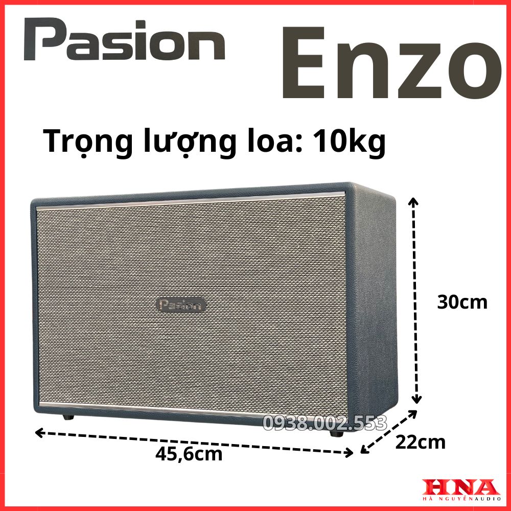 Pasion Enzo là dòng loa xách tay mới nhất , được thiết kế tựa đàn anh của mình là Pasion Mozo nhưng có kích thước nhỏ hơn và gọn hơn, phục vụ nhu cầu khách hàng không gian nhỏ, gọn nhưng vẫn muốn chất âm hay và công suất lớn như Pasion Mozo.